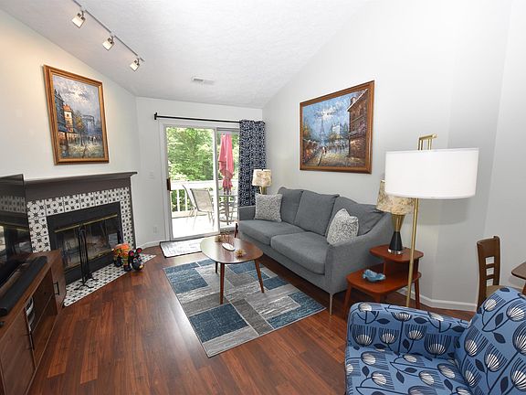Fireplace tile surroundPrivate back deckVillage poolCustom stand-up showerVaulted ceilingsLots of natural lightOverlooking the woods