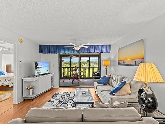 Now available for rent in the desirable 55+ community of Green Dolphin, this beautifully furnished two-bedroom, two-bath top-floor unit delivers sweeping panoramic views of the golf course, serene pond, community pool, and unforgettable Florida sunsets. Located in the heart of Tarpon Springs, this bright and inviting condo stands out with its open layout, tasteful updates, and unmatched privacy with retractable shades in the Florida room. Step into the welcoming foyer and take in the spacious living and dining areas, filled with natural light and complemented by warm laminate wood flooring throughout. To the right, the updated eat-in kitchen features granite countertops, a brand-new stainless steel refrigerator (2024), stainless steel appliances, a breakfast bar, pantry, and a charming nook for morning coffee. The kitchen seamlessly flows into the main living space, where you'll find two comfortable sofas, a full-size dining table, and direct access to the enclosed lanai through sliding glass doors. The oversized master suite, tucked just off the living area, includes a walk-in closet, an ensuite bath with a double sink vanity, a linen closet, and additional storage. Sliding doors from the master also open onto the lanai, where floor-to-ceiling windows and sunshades offer the option to soak in the views or relax in the breeze. The second bedroom is thoughtfully positioned near the front of the unit for added privacy and is adjacent to the second full bath, which includes an updated vanity, walk-in shower, and a laundry area with full-size washer and dryer. Throughout the unit, thoughtful finishes like luxury vinyl tile in the kitchen and foyer add durability and style. A reserved, under-building covered parking spot and a separate storage unit provide extra convenience for seasonal gear, bikes, or golf clubs. The condo also includes a utility closet for added flexibility. The Green Dolphin community offers a lively, active lifestyle with a wide range of amenities including a heated pool, tennis courts, fitness center, BBQ area, clubhouse, and social activities. Rent includes cable, internet, water, sewer, and trash. Just minutes from the world-famous Tarpon Springs Sponge Docks, beaches, shopping, restaurants, and the Pinellas Trail, and directly across the street from a hospital and medical offices, this location is ideal for those seeking both comfort and convenience. Golfers will appreciate the proximity to Tarpon Springs Golf Course, Innisbrook's Copperhead Course, and several other nearby options. With its unbeatable views, updated features, and ideal setting, this fully furnished unit offers the perfect Florida rental experience.