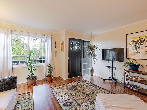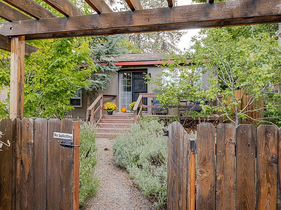 East Midtown oasis 1 mile from downtown Bend. This 4-bedroom, 2-bath Midcentury home on a large city lot features an extensive organic edible landscape. Located directly across from Orchard Park & just blocks from Midtown Yacht Club and shopping. Nearly 1,800 sq. ft. of single-level living includes two welcoming living rooms: one w/ gas fireplace, the other w/ wood insert framed by floor-to-ceiling brick. The kitchen/dining areas highlight Spanish tile floors & decorative tile counters. The primary suite has glass sliding doors that open to the back deck, hot tub & garden. Outdoor living is extraordinary w/ two decks, raised beds & a bounty of fruit trees/ berries/ herbs/flowers with drip systems in place. Three immense Ponderosa pines grace the property which offers privacy and tranquility. Fully fenced/off-street parking, a two-car garage & large shed that could convert to studio. Recent upgrades include Central A/C, air purification, heating system, solid wood doors, fresh paint.