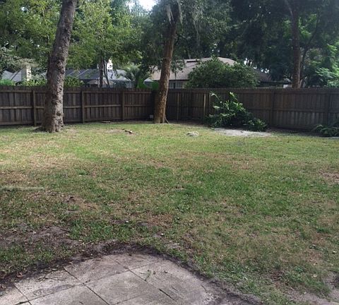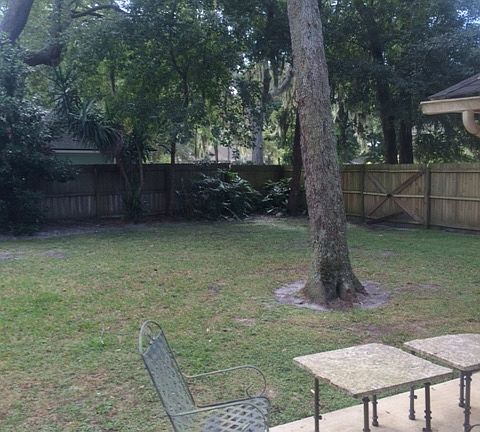 New roof installed in December 2015, all brick construction, 4 bedrooms with split floor plan, close to beach in a sought after neighborhood on island. Lovely, mature trees, large fenced in backyard and privacy make this house a desired location. House is being sold "As Is', as price reflects, and carpet has already been removed. Woodburning fireplace in living room will need a new damper.