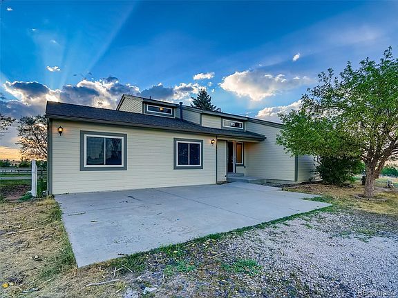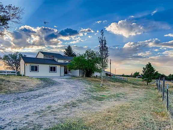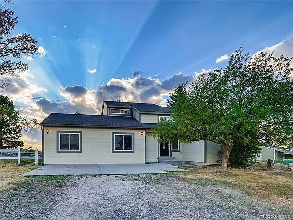 Very hip and funky home in the country, completely remodeled with 2 new bedrooms that are perfect for offices. A 3 stall horse barn and a new detached 2 car garage plus 3.5 acres of land to enjoy the prairie lifestyle. All new stainless appliances, granite counters and white craftsman style cabinetry open to the great room with its gas fireplace, or opening on to the back patio to enjoy those amazing Colorado sunsets. Four bedrooms on the main floor plus the sequestered master suite upstairs with a large walk-in closet. Just so you know, there are sprinklers in the ground but they do not work at this time.