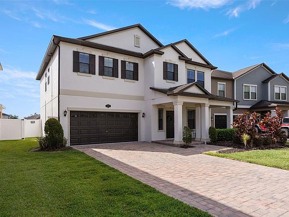 Welcome to Heron Preserve at K-Bar Ranch! This stunning 4-bedroom, 2.5-bathroom home offers 2,715 sq. ft. of beautifully designed living space—perfect for those who value comfort, connection, and convenience. From the moment you arrive, the freshly UPDATED EXTERIOR PAINT (2024), featuring a top-level rainwash formula, lush landscaping, and peaceful CUL-DE-SAC LOCATION create an inviting first impression. Enjoy morning coffee or evening chats on the serene and spacious paver front porch, surrounded by scenic ponds and tranquil conservation views in this private, GATED COMMUNITY. Step inside to a bright, welcoming foyer with soaring ceilings and sun-filled windows that make the home feel open and airy. The FLEX ROOM at the front of the home—currently used as a formal dining room—offers endless potential: convert it into a home office, formal living space, or keep it as a dining area to suit your needs. The heart of the home is the thoughtfully designed kitchen, perfect for family gatherings and everyday living. It features granite countertops, ample cabinet and counter space, a spacious island with seating, and CUSTOM PANTRY SHELVING for optimal organization. A picturesque window and oversized sliding glass doors lead to serene views of the private backyard and tranquil pond. The casual dining area seamlessly flows into the spacious living room, where large windows and an accent wall add warmth and character. Throughout the first floor, you’ll find smartly placed organization zones—ideal for drop stations, homework corners, or remote workspaces—offering the flexibility and function today’s families need. Upstairs, four generous bedrooms await, including a luxurious primary suite with an EXPANSIVE WALK-IN CLOSET ready to become your dream dressing space. The primary bathroom features a glass-enclosed shower, a garden tub, and a double-sink vanity with granite countertops. A second full bathroom, also with granite countertops, includes a double-sink vanity and a separate shower room for added privacy and ease. Back downstairs, step through the oversized sliders to your screened-in covered patio, beautifully updated with tile flooring. From here, take in the FENCED-IN BACKYARD and peaceful POND VIEW—a perfect setting for entertaining, relaxing evenings, or enjoying Florida sunsets. With FRESH INTERIOR PAINT (2025), updated exterior paint (2024), modern finishes, and thoughtful touches throughout, this home is truly move-in ready. Discover the best of community living at Heron Preserve in K-Bar Ranch, where family-friendly amenities and outdoor recreation come together. Enjoy exclusive access to a playground and dog park within Heron Preserve, plus all of K-Bar Ranch’s exclusive amenities including a sparkling pool, pickleball court, basketball court, and additional playgrounds perfect for every lifestyle. In this desirable community you'll enjoy top-rated schools, nearby parks and trails, and easy access to shopping, dining, and entertainment—everything your family needs, just minutes away.