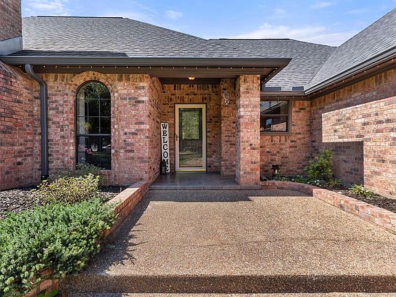 Incredible Rare Find on 2.57 Acres in Flint, TX! This property truly has it all—space, charm, and functionality—set on 2.57 acres of peaceful, park-like grounds. From the moment you pull up, you’ll be impressed by the immaculate curb appeal, circle drive, and beautifully maintained landscaping that welcomes you home. Inside, the 2,572 sq ft main home offers a warm, inviting feel with a spacious living room anchored by a wood-burning fireplace complete with blowers that can heat multiple rooms. The layout features 3 bedrooms, plus a versatile 4th that could serve as a game room or second living area, along with a dedicated office, formal dining room, and an eat-in kitchen designed for gathering. The kitchen is a showpiece with granite countertops, bar seating, a built-in KitchenAid refrigerator and freezer, and plenty of room for family or entertaining. The primary suite is a retreat of its own, featuring a tray ceiling with recessed lighting, two large walk-in closets—one thoughtfully converted into a reinforced safe room/tornado shelter—and a spa-like bath with double sinks and a walk-in shower. Step outside to your own private oasis. The covered back porch overlooks mature trees and manicured landscaping, while the backyard features a solar-powered pond fountain, cozy fire pit, and charming pergola. The stocked pond is ready for lazy afternoons of fishing or unwinding by the water. Also included is a 400 sq ft guest house with a full bath and space to add a kitchenette—ideal for visitors, extended family, or even a private home office. The 26x44 workshop is a dream setup with one single and one double overhead door, plus a mini-split system for year-round comfort. Rounding out this incredible property are thoughtful extras like a decorative windmill, 750-gallon rainwater collection system, and scenic surroundings that make every day feel like a getaway. Additional features include Trimlight system on overhangs and new 6" gutters - call for your appointment today!