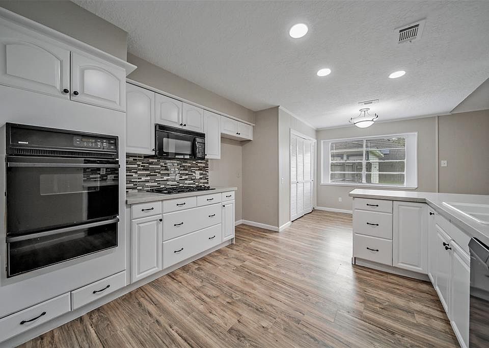 Completely UPDATED! This single story cul-de-sac charmer has been REMODELED to provide open concept floor plan. NEW flooring throughout w/ new baseboards. Kitchen completely RENOVATED with quartz countertops, new back splash, dishwasher, painted cabinetry, fixtures & lighting, and breakfast bar added. Family room has updated fireplace, big screen TV outlet & new tempered sliding glass door to patio. Renovated bathrooms with new fixtures, painted cabinetry, new lighting & mirrors. New light fixtures,door hardware, wide blinds, wireless doorbell and more. Nestled in Enchanted Oaks, zoned to Klein ISD with Forest Oaks Swim & Racquet club and Forest Oaks Park just minutes away. Close to shopping and I-45 for easy commute. NO flooding.
