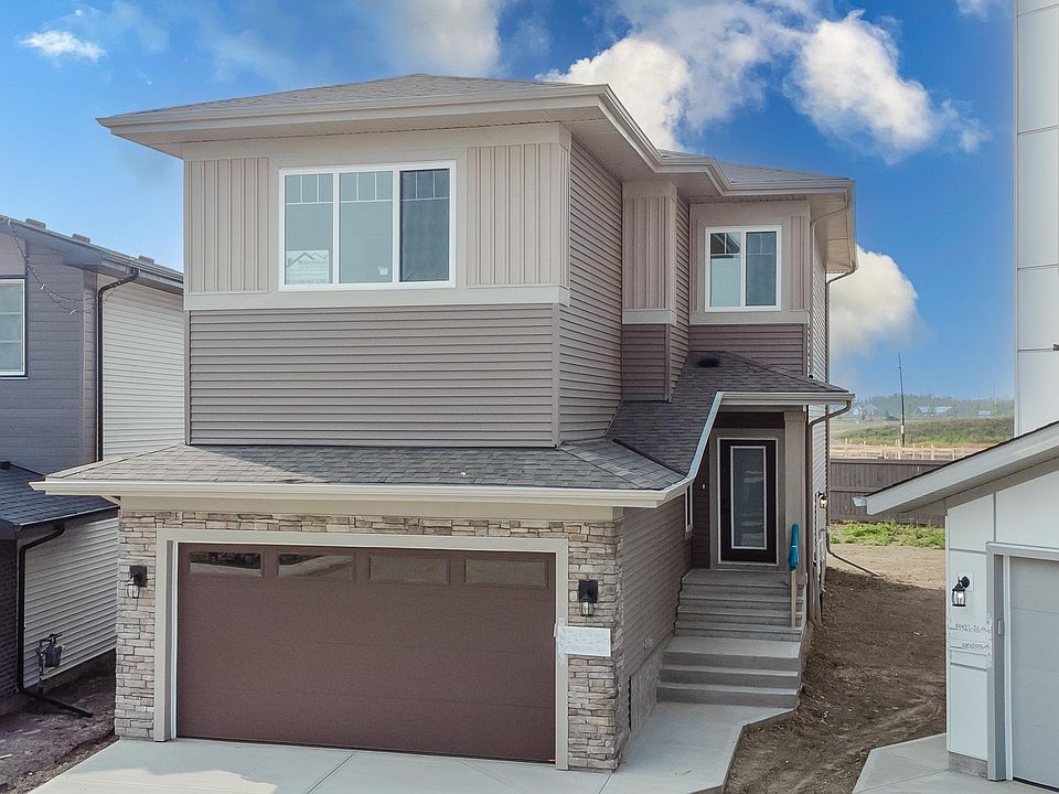 Welcome to this brand new, beautifully designed 3-bedroom home in the sought-after Uplands community. Featuring modern finishes and a smart, functional layout, this home is perfect for families, professionals, or investors alike. The main floor offers a full bathroom and a private den, ideal for a home office, guest room, or flex space. The open-concept kitchen includes a sleek walkthrough pantry and flows into a stunning open-to-below living area with large windows and a cozy fireplace—creating a warm, inviting space for relaxing or entertaining. Upstairs, you'll find a spacious bonus room, convenient laundry, and three generously sized bedrooms, including a comfortable primary suite. The separate side entrance leads to an undeveloped basement with potential for a legal suite, offering excellent rental or multi-generational living opportunities. With a double attached garage and large backyard in a growing, family-friendly neighborhood, this home offers comfort, flexibility, style, and long-term value.