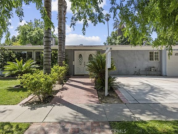 As you arrive at this property in Reseda, you'll discover your very own oasis. The lush and full landscaping will greet you with tall trees, shrubs, flowers, and a well-manicured lawn. As you go through the double doors, you'll enter a 2,200 sqft home that boasts 4 bedrooms and 3 bathrooms. The kitchen features lots of cabinet space, glossy countertops, stainless steel appliances, and an island with bar seating. The dining area offers a dry bar and additional storage and countertop space. The living room is spacious with beamed ceilings, beautiful flooring, and plenty of room to relax. The more formal dining room offers recessed lighting, baseboard molding, and natural light from the sliding doors accessing the backyard. The bedrooms are generously sized, with the primary bedroom featuring a private bathroom. The backyard, which sits on a 7,499 sqft lot, is perfect for entertaining. Take a dip in the pool, enjoy outdoor dining on the covered patio, or relax by the firepit. Parking is available on the driveway and in the 1-car garage. This property is conveniently located near the Northridge Fashion Center, CSUN, restaurants, markets, and freeway access.