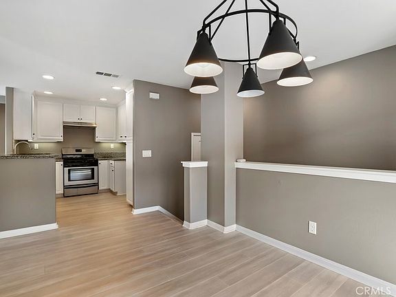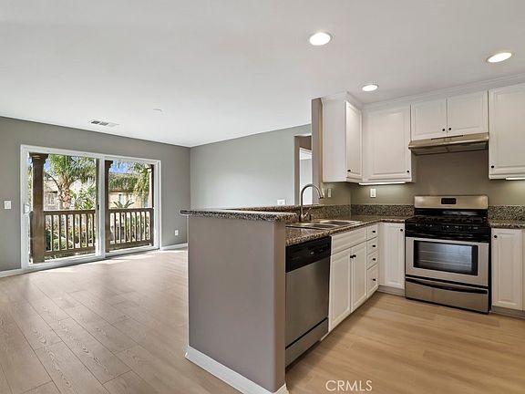 Remodeled, Updated and Turnkey! Two bedrooms and two full bathrooms with a convenient direct access garage. Fresh designer paint throughout, sets off the gorgeous brand new laminate wood flooring and brand new carpet. Open concept feeling as the kitchen is open to the dining and living areas. Kitchen is adorned in granite counters brand newer stainless appliances and fresh white cabinets. A seperate dining room provides a decorative ceiling fan and ample space for entertaining/dining. A light and bright living room boasts a sliding door for breezes, opening to the deck, superb for barbeque storage as well as outdoor relaxing. Primary bedroom offers a decorative ceiling fan, two walk in closets with nice storage as well as a primary bathroom with a brand new re-glaze on countertop and shower. Secondary bedroom is a nice size also with a decorative ceiling fan. Hallway bathroom countertop and shower have also been reglazed looking brand new. Only sharing one wall, makes this a nice private home. One car garage plus assigned covered parking spot. Close to the pool and childrens playground. Move in ready, literally! Be sure to watch the virtual tour!