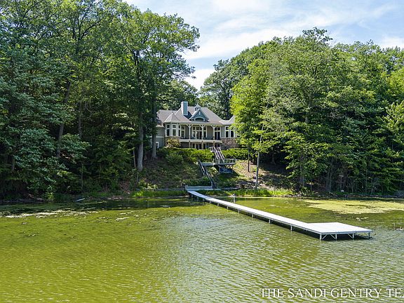 Discover the epitome of luxury living in this exquisite custom-built home, situated on 3 acres of pristine land with 460' of Spring Lake water frontage. Nestled at the end of a peaceful cul-de-sac in the highly sought-after Crystal Bay Woods neighborhood, this executive home offers complete privacy and tranquility. With 4 bedrooms and 3 1/2 baths spanning over 5,300 square feet of finished living space, this stunning residence boasts incredible features and craftsmanship throughout. As you step into the grand foyer, you'll be captivated by the soaring ceilings, floor-to-ceiling windows, and beautiful custom trim work that sets the tone for the rest of the home. Thoughtfully designed and well-conceived floorplan offers an unparalleled living experience. The gourmet chefs kitchen is a true masterpiece, featuring two center islands, wall oven, granite countertops, and custom cabinetry. The adjacent dining area with French doors leads to the expansive deck and offers a perfect setting for memorable meals. The main floor primary suite is an oasis of comfort and relaxation, complete with a cozy sitting area and a private balcony overlooking the serene lake. The spa-like en suite bathroom features a soaking tub, walk-in shower, and dual vanities adding to the sense of luxury that permeates throughout the home. The finished walkout lower level features three bedrooms, two full baths, spacious family room with wet bar, workout room, and theatre room. Step outside to the beautifully landscaped yard with underground sprinkling, a fire pit, and 130' dock to enjoy all that waterfront living offers. This home truly has it all - from its unbeatable location to its luxurious finishes and features, this is a rare opportunity to own your own private oasis on Spring Lake.