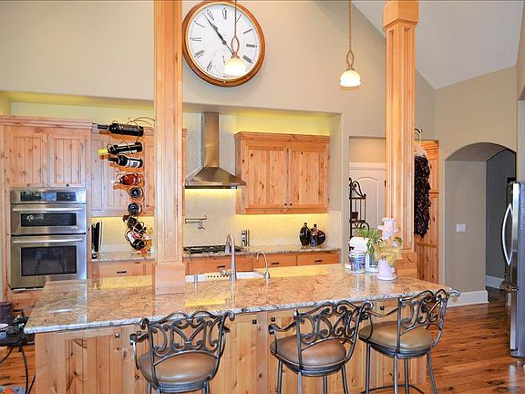 Immaculate single level home that backs to Elk Meadow! Enjoy the cozy fireplace and tall vaulted ceiling in the great room. Custom knotty alder cabinets in the kitchen with granite counters, S/S appliances, island and pantry. 2 master suites with one featuring 2 walk-in closets, double vanity, soaking tub and large tiled shower. Den/office with built-in shelving and desk. Plantation shutters. Covered paver patio, landscaped with water feature outside . 3 car garage with plenty of storage and a work bench.