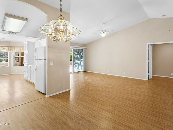 Off the Greenbelt and steps away from the pool, It's all about location when it comes to this beautiful two bedroom two bath Patio Home. This home features a split floor-plan with two newly carpeted bedrooms and nicely kept bathrooms. The main living area has vaulted ceilings, art nooks, with an open dining area. The galley style eat-in kitchen features White Cabinetry, Appliances, including a refrigerator, with a view through the bay window of the greenbelt. This home also features inside laundry with cabinetry and a new washer and dryer set, two car garage with additional cabinetry and sun screens. The community features a community center, golf course, tennis courts and pools.