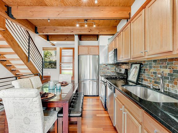 Furnished (or can be rented as un-furnished) split level Queen Anne townhome with spacious one car garage and sweeping views of the Puget Sound, Elliott Bay & the Olympics on every level. Bright and sunny, with timeless finishes include: soapstone counters, stainless appliances, exposed wood ceilings & fir beams, view deck, in-floor radiant heat, custom metal railings, and eco-friendly flooring. Upper level master suite with vaulted ceiling, walk-in closet, and private balcony. Lower level suite with private deck. Plenty of free street parking spaces. Minutes to Hwy-99, I-5, South Lake Union, Amazon, new Expedia campus, new Google campus, Seattle Pacific University, Key Arena, Space Needle, Amgen, Magnolia, Wallingford, Ballard, Freemont, and downtown Seattle. Close to bus lines 1, 2, and 29. Highly rated elementary, middle, and high schools. Walk to Macrina, Starbuck's, restaurants, farmer's market, Trader Joes, Safeway, Menchie's, Bartell's, Top Pot, and Molly Moon's. Sorry, pets aren't allowed. Non-smokers only. You pay all the utilities. Security deposit of $3950, plus first month rent, and a non-refundable $450 cleaning fee is due at the time lease is signed. Lease term: 1 year. Available now.