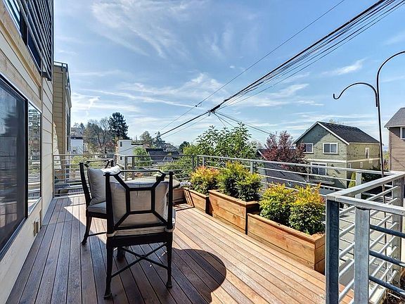This modern townhome offers stunning views of the Puget Sound and the Olympic Mountain range. The main floor is an open floor plan with exposed wooden beams, hardwood floors, gas fireplace and stove, surround sound hook-up, and stainless steel appliances. The layout is ideal for roommates or a guest bedroom with the master bedroom on the top floor, and the second bedroom on the third floor. Each floor with a bedroom has its own full bathroom, walk-in closet, and attached deck. There is a stacked washer/dryer unit on the third floor, and ample storage throughout the house. There is also a one-car garage with enough additional space for some tools or gear. The neighborhood is absolutely wonderful- the neighbors are friendly and helpful, it is very quiet and safe, and the views are absolutely spectacular. This house is just a short walk from Kerry Park, Macrina Bakery, Ken's Market, Trader Joe's, Top Pot doughnuts, Cafe Fiore, How to Cook A Wolf, and Whole Foods. It is also a central location- very close to downtown, eastlake, UW, Fremont, Magnolia, and Ballard. Renter pays for gas/water/garbage/sewer/electricity