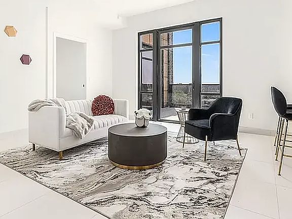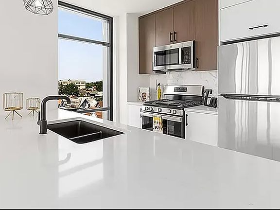 This unit is a 2 bed 2 bath with a 800+ square ft private terrace facing city skyline views. The dynamically designed units boasts open layouts, porcelain floors, high ceilings, large expansive floor to ceiling windows, open modern kitchens with quartz stone countertops, light wood tone cabinetry and lacquered finishes. The stainless steel appliances include a gas range, dishwasher, microwave and double kitchen sinks. The apartment comes with ample closet space, an oversized bathroom with a tub, split heating & cooling systems, and in-unit washer & dryers. Each apartment features private balconies or terraces. Building amenities include two elevators, a fitness center, furnished roof deck with panoramic views of Brooklyn and Manhattan, residents lounge that features wifi, cable television and a grand wet bar with direct access to a furnished terrace outfitted with a yoga deck, seating and barbecues. Additional amenities include a secured package room, storage, bicycle storage and a parking garage equipped with electric vehicle charging stations. The Posh is located on the corner of Coney Island Ave & Ave P and is only a few blocks from the B & Q Trains at Kings Highway as well as surrounded by an array of stores, restaurants & cafes. Amenities: - Tenant Lounge with Wifi & Cable TV - Gym - Yoga Deck - Parking (additional cost) - Bike Storage - Elevator - Roof Terrace w BBQ grills - Package Room - In-Unit Washer/Dryers - Roof deck with Brooklyn & City Views - Pets Allowed - Guarantors Allowed *Cooking Gas & Hot Water included. Photos are for illustrative purposes showcasing the model units.