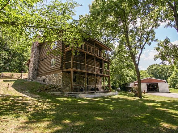 Beautiful Log Cabin in the Woods on over 16 Acres of timber w/ 2 Ponds, a creek that runs through and an elevation change of over 100FT. You feel the warmth of a log home w/ 2 stone wood burning fireplaces, open floor plan, vaulted ceilings w/ exposed beams and log furnace. The upper loft bedroom w/ sitting area, full bath, and covered porch/balcony is simply stunning with amazing views! Updated first floor kitchen w/ Custom Island that opens to the family and dining room w/ 1st floor bedroom and bath. Lower lever w/ family room, work out area, laundry, storage, half bath and walks out to another cover porch. Large storage shed/garage. This is nature at its best, birds, turtles, deer, and wildlife of all kinds, walking trails, and plenty of open space. Minutes from El Paso, Hudson, Eureka, Bloomington/normal. Do not miss out on this one of a kind Cabin in the Woods! Exterior Cabin has been cleaned, restored, stained, and sealed Spring of 2020. Ondura Roof installed in 2005 and carries lifetime Guarantee. Whole house filtration and softener is rented from Culligan Reverse osmosis drinking system is owned and will remain. Electric Hot water heater - 2012 Furnace - Duel-fuel propane ignited wood burning furnace that is original to the home. 2 Parcels - 1436401013 and 1436401023