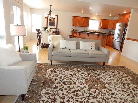Beautiful home perfect for any lifestyle! Large windows, open floor plan, and fireplace create a bright and welcoming living space. Enjoy sunset views from the large deck. The main floor features a Master Suite and two additional bedrooms. Quality stainless steel appliances (2014). Newer main floor luxurious carpeting (2014). Vaulted ceilings and crown molding. The master suite has a quality walk-in closet (2016). Large family room in basement with fireplace opens up to a covered patio and level backyard. 2-car garage Garage features shelves and work bench. Home has three full bathrooms Lease is for 1 year and can begin any time starting May 1. No Pets. Tenant is responsible for gas/electric/water/sewer/garbage/internet, and snow/yard maintenance. We are breaking our lease to move out of the area; if you are interested in the home, we will put you in touch with the rental management company for the application/lease/deposit.