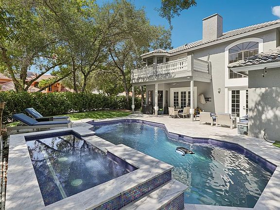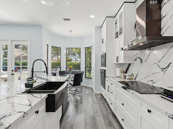 Welcome to this stunning 4-bed home PLUS a spacious office/entertainment room and a 3-car garage nestled in the prestigious gated community of Eagle Trace. This home first impresses with its extended driveway, professionally landscaped grounds, and upgraded pool featuring new pool equipment. Inside, you will be greeted by soaring ceilings, direct views of your backyard and an open concept kitchen. Vinyl wood flooring throughout—with no carpet in sight. All bathrooms have been modernized with sleek, floating wood vanities. The first floor you will find the private guest suite with its own full bathroom while upstairs are the three additional bedrooms. Roof was replaced in 2015. This move-in-ready home has it all—style, space, and functionality.