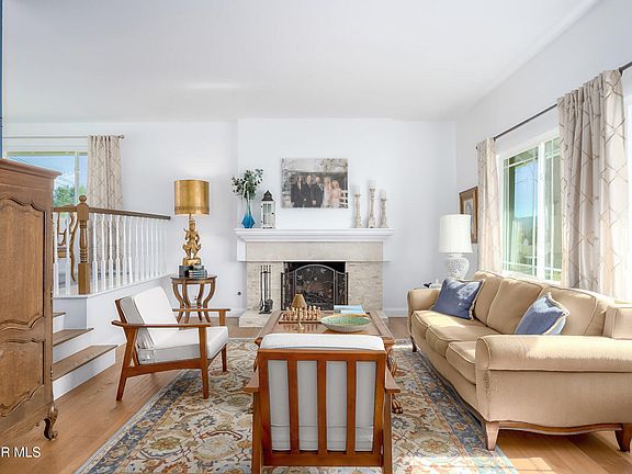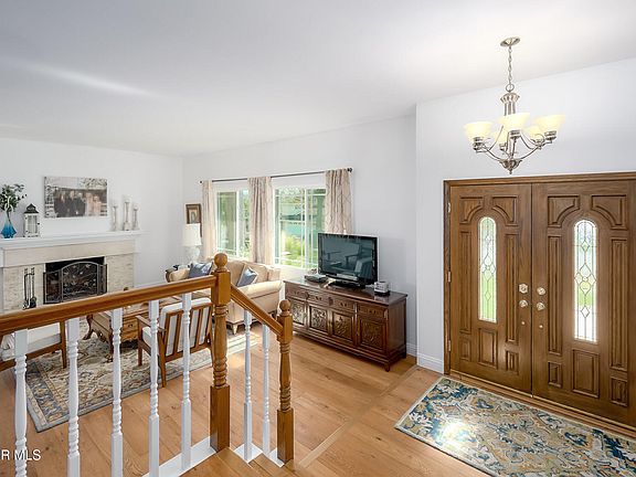 This beautiful Thousand Oaks home is loaded with upgrades and immaculately maintained. You'll love the easy floor plan with three bedrooms upstairs plus two bedrooms downstairs, three full bathrooms, spacious eat-in kitchen open to family room and features granite counter tops and island, marble backsplash, wood cabinets, stainless steel appliances, ample counter space, recessed lights, and plenty of storage space for all your kitchen needs. Wide plank engineered hardwood floors and tile floors. Living room has high ceilings, wood burning fireplace and large windows for plenty of light. The family room features a fireplace, built in bookcases, recessed lights, surround sound and a large walk-in closet for extra storage. A dedicated dining room is situated adjacent to living room and kitchen, creating an easy flow for hosting friends and family. Primary bedroom with ensuite and two closets. Indoor laundry room. Very private and park like back yard with mature landscaping, saltwater pool & spa, multiple patio areas, great for entertaining, 16,988 SF lot. Three car garage with EV charger. This home is in an outstanding location, close to schools, shopping, parks and the Los Robles Medical Center.