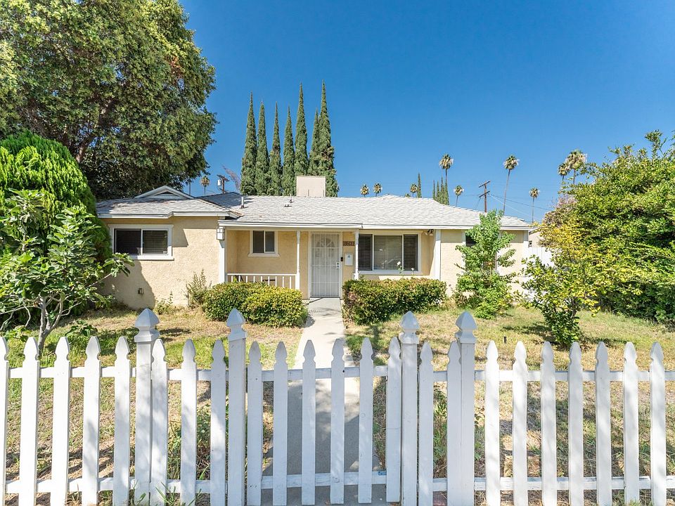 A charming Reseda property featuring curb appeal, the perfect location and lots of space. The property has a white picket fence and lots of greenery that surrounds the home. Inside this 3-bedroom and 2-bathroom home find a cozy living room, hardwood flooring, crown moldings, recessed lighting, plantation shutters, plus lots of storage space too. There is a kitchen is equipped with stainless steel appliances and ample countertop space. Nestled under a large cathedral ceiling is a family room that has a fireplace, 2 ceiling fan/light fixtures, French doors, and easy access to your backyard. Bedrooms are all bright and spacious. There is a detached 2-car garage. The home not only has a nice sized front yard, but it also has a large back yard that is ideal for entertaining! The yard features lots of privacy, plus an open patio space where you can add seating and a BBQ grill. Located near Starbucks, Chevron, CVS, HomeGoods, USPS, Food 4 Less and lots of popular dining options. Near Shirley Avenue Elementary and John A. Sutter Middle School.