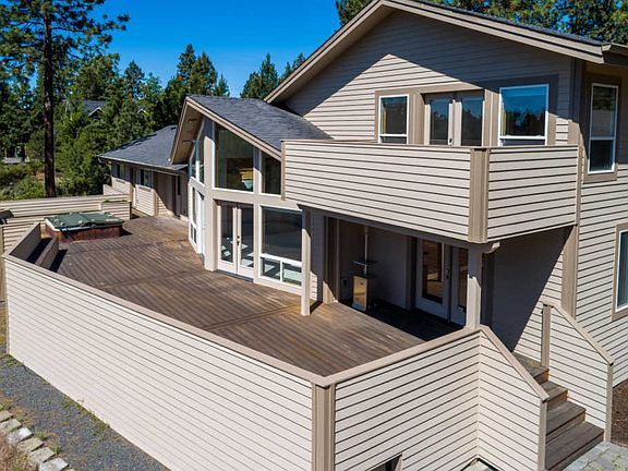 Situated high on the Rimrock above Century Dr on the way to Mt. Bachelor, this private setting offers mature pines & landcape on nearly an acre of prime west Bend property. A true custom home, this unique floor plan features a prow front wall of windows to capture spectacular views of the tree tops. Open living space w/soaring 2 story vaulted ceiling, natural wood trim & accents throughout. Spacious Master Ste has a private deck & oversized bath. Expansive deck off the Great Room makes entertaining a lg party comfortable! Attached dbl car garage paved drive. You'll enjoy the heated 1,800 shop year round - with space to store all of your toys & have a work space too w/tons of built in cabinetry. Vaulted ceiling in part of the shop for taller RV access. Just minutes from downtown Bend, Phil's Trail, Alpine Park & Tetherow. Live & play here - or subdivide w/potential to create 4 individual home sites. Don't miss this one!