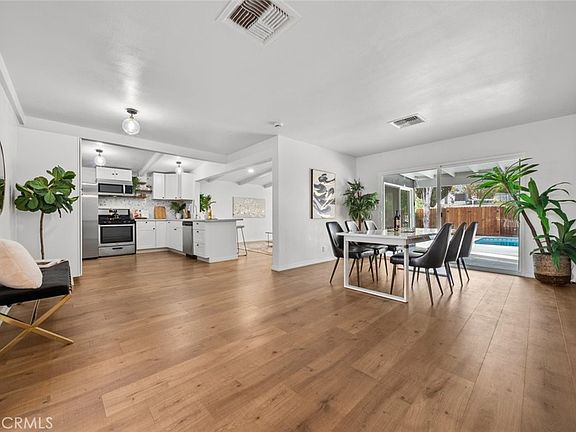 Immerse yourself in the enchanting charm of 19432 Arminta St, a breathtaking mid-century modern single-family residence that boasts 3 spacious bedrooms and 2 beautifully appointed bathrooms across an expansive 1,598 sq. ft. of thoughtfully designed living space. The inviting open floor plan captivates from the moment you enter, featuring a stylish dining room that overlooks a serene and lush backyard, creating a seamless flow perfect for entertaining guests. The adjacent chef’s kitchen is a culinary masterpiece, showcasing gleaming stainless-steel appliances, including a refrigerator, gas stovetop, oven, microwave, and dishwasher, complemented by a convenient walk-in pantry for all your storage needs. The elegant living room exudes sophistication with its recessed lighting and stunning beamed ceilings, while a cozy fireplace provides a warm focal point, making it the ideal retreat for relaxation. The bedrooms provide ample space for personalization and are served by both chic bathrooms, one offering a walk-in shower and the other a shower-in tub. Indulge in your private backyard oasis, where a covered patio invites you to unwind in the idyllic weather, and a sparkling pool awaits for refreshing, sun-soaked leisure. Conveniently located in the prime area of Reseda, you are just a short drive away from vibrant shopping centers, delightful restaurants, and reputable schools. Don't miss your chance to make this exceptional property your own—schedule your private tour today and experience the luxurious lifestyle you've been dreaming of!