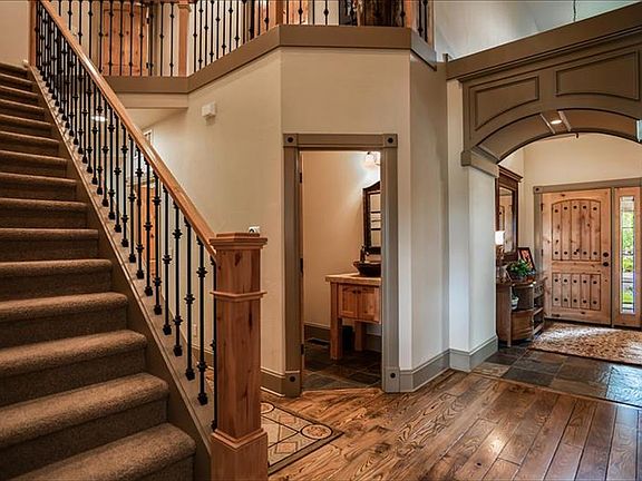 River Rim's one of a kind home backing to the meadow complete with RV garage! As you enter the home just off the foyer there is the formal living room and office with 2 custom built-in desks. The great room features a floor to ceiling gas fireplace with stone surround, large picture windows overlooking the backyard complete with electric blinds and beautiful wood beams. Enjoy cooking in the gourmet kitchen which boasts stainless appliances, pantry & a leather granite counter bar with chiseled edge. The master is on the main level as well as an additional jr. suite with private bath. Upstairs are 2 additional bedrooms with Jack & Jill bath. The 4th bedroom features a wet bar & could be used as a bonus/pool room. There is an oversized double car garage with ample storage plus an RV garage with 13 ft door & room for a 26 ft RV. The backyard has expansive views of the meadow and beautifully landscaped. Enjoy relaxing on the paver patio or in the hot tub & make this your own private oasis!