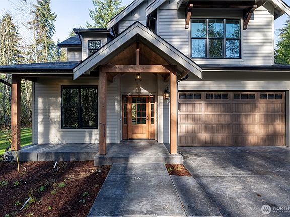 A luxury, private county home in a new development located on a dead end street equidistant between Seattle and Vancouver! This 2,600+ square foot home features high end finishes set in a private cedar glade on 1 acre with native trees, mountain vistas and great light. You'll love the vaulted ceilings, and spa-quality bathrooms complete with waterfall showers and linear drains, gourmet kitchen with all SS appliances, expansive great room, huge primary suite, plus 3 bedrooms, and an office/den. This modern farmhouse style home has wide plank oak floors, a stone fireplace, a covered outdoor patio just off the living room, and generous living spaces throughout. With quick access to I5 and Mt. bike trails, this custom home deserves a look.