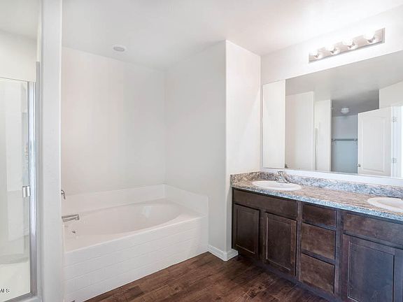 The Snowflake is a beautiful, two story home featuring an open floor plan, 4 bedrooms and 2.5 baths. The Snowflake showcases a master suite complete with a walk-in closet, double sinks in both full baths, a fully fenced backyard, covered patio and front yard landscaping. This new home comes with over $10,000 in upgrades including energy efficient kitchen appliances, spacious countertops, stunning wood cabinets, brushed nickel hardware and fixtures and an attached two car garage. In addition, Tuscano is conveniently located close to the heart of Phoenix with easy access to downtown.Picture shown is of similar home.