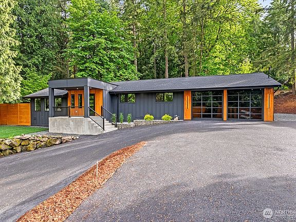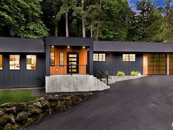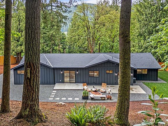This stunning HGTV-style remodel sits on a spacious nearly 1 acre lot with picturesque views of Squak Mountain and is located in the coveted Issaquah School District. The home features a brand-new roof, A/C unit, private fencing, and a tankless water heater. Inside, enjoy a custom kitchen with a waterfall island, undercabinet lighting, accent walls, and vaulted ceilings. The primary suite boasts vaulted ceilings, access to a backyard oasis, and a spa-like bath with heated floors, custom floating vanities, and a designer shower. Additional highlights include a dedicated office, heated flooring in the laundry room, a custom garage door, and a show-stopping front porch. This home blends luxury, comfort, and modern convenience—don’t miss out!