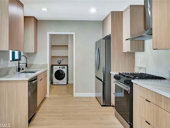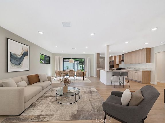 Discover this stunning Tarzana property, offering a beautifully remodeled main house at 19434 Calvert (approx. 1,500 sq. ft.) and a fully permitted ADU at 19432 Calvert (approx. 400 sq. ft.)—together creating nearly 1,900 sq. ft. of refined living space. Designed with an open-concept floor plan, this residence blends style and functionality, creating an inviting atmosphere ideal for both everyday comfort and sophisticated entertaining. Step inside to find brand-new floors, recessed lighting, and fresh interior & exterior paint that elevate every corner of the home. The gourmet chef’s kitchen is a showstopper, featuring stainless steel appliances, quartz countertops, and a breakfast bar perfect for casual dining or hosting friends. A separate laundry room off the kitchen adds convenience to your daily routine.
