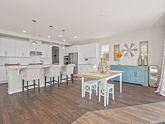 NO Mello Roos and a breathtaking VIEW!!! This newly built KB construction home is practically brand new, and located on a quiet, family friendly cul-de-sac in one of the most highly desired neighborhoods of Plum Canyon. Inside you are welcomed by a light and bright open floor plan! The spacious living area flows into both dining areas as well as the highly upgraded kitchen. Complete with a custom 9-foot island, gorgeous (seamless) granite countertop, white shaker style cabinets, herringbone pattern backsplash, stainless steel appliances, and vinyl plank flooring, this kitchen is an absolute dream come true! One of THE BEST unobstructed views of the Santa Clarita Valley can easily be enjoyed through the custom 3-panel sliding glass doors. The amazing sunsets and landscaping potential are endless in the large and private backyard. One bedroom and full bathroom conveniently on the main level, with 3 additional rooms and the master suite located upstairs. The oversized master bedroom is the ultimate haven with spectacular valley views, large walk-in closet, and elegant ensuite. The upstairs loft is a perfect space to keep the family entertained or the kids comfortable during home school. A short drive to SCV's favorite restaurants, zoned for award winning schools, and close proximity to the community pool are just a few more reasons this home easily checks every box on your wishlist.
