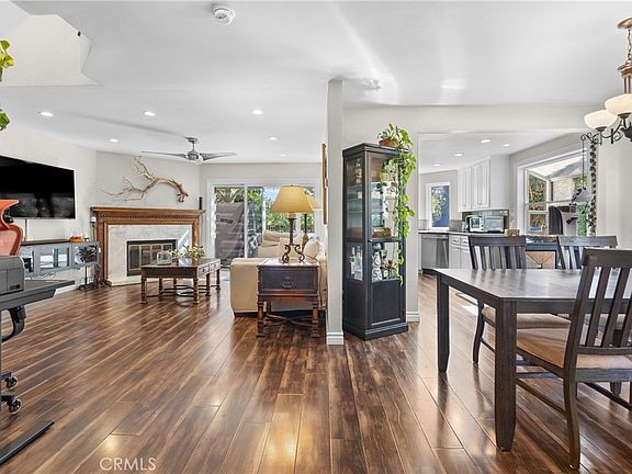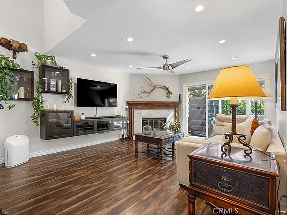 Step into modern living with this stunning 3-bedroom, 2.5-bathroom home, offering 1,929 square feet of beautifully remodeled space in an exclusive guard-gated community. Perfectly designed for today’s lifestyle, this home blends sleek style with comfort and functionality. As you enter, you’re greeted by clean lines and contemporary finishes—laminate flooring flows seamlessly throughout, paired with smooth ceilings, sky light, and LED recessed lighting that set the mood. The open living space features a cozy fireplace with a custom mantle, creating the perfect spot to relax or entertain. Dual-pane windows with plantation shutters give the home a sleek, polished look while keeping it energy efficient. The heart of the home, the kitchen, is fully upgraded with custom cabinetry, stainless steel appliances, and plenty of counter space to prep, cook, and serve. Connected is a formal dining area that’s perfect for hosting dinners or casual get-togethers. All bathrooms have been fully remodeled with custom tile shower upgrades for that high-end, spa-like vibe. The primary suite is a true retreat, offering an upgraded bathroom with his and hers dual sinks, LED mirrors, luxury towel warmers, and a hidden walk-in closet plus an extra closet for added storage. The private backyard features a covered patio, offering plenty of space to chill, entertain, or have dinner al fresco. Additional highlights include a two-car garage and access to a host of community amenities: a pool, spa, tennis courts, basketball court, picnic area, and a kids’ playground—plus 24/7 security, all managed by the HOA. And the best part? This home is located in an award-winning school district, making it perfect for families looking for excellent education options. With 1,929 square feet of stylish, thoughtfully designed living space, this home is move-in ready and waiting for its next owner. Don’t miss out—schedule your private tour today and experience modern living at its best!