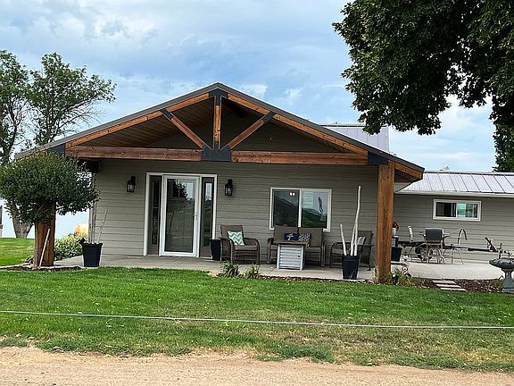 Lake sunrise and prairie sunsets! This 4 bedroom home on the west side of Lake Byron has been cared for and updated and is ready for the next family to call it their headquarters on the water. The beautiful Montana-inspired exposed beam front patio area welcomes you to the lake and outdoor living. Over 2,300 square feet of patio, deck and permanent dock make this the ultimate entertaining spot for any size group. Over the water a 16' X 20' boat house makes storage, and lake activities easy and is also baseboard heated for winter activities on the ice. The permanent dock over the water was raised and rebuilt in 2019 to comply with new water levels, and gives you no labor access to the water and a great spot for the best shore fishing on Lake Byron as well as a spot to base all your boat activities from. The house was resided in 2017 and finished with a beautiful worry-free metal roof to withstand all the storms the prairie has to offer. The open-style kitchen was remodeled in 2008 and has a 18' vaulted ceiling, tile floors, a large pantry closet and big windows and sliding doors to bring the outside into your dining area. A 4 seat island is the center point for family gatherings and the dining area has room for your big farm table to sit the entire family around. The family room is a cozy retreat with windows and a sliding door looking out over Lake Byron. The bonus in this area is an open office, where you can work from home with the best views. The fireplace is ready for a propane insert so you don't have to deal with the extra work. The master suite is everything you want. Remodeled in 2022 gave this oversized area a walk-in closet, sitting area and beautiful modern touches. The master bathroom offers a massive closet, much storage and it's own washer/dryer nook so you will never get behind on laundry again. 2 bedrooms on the main level were fully remodeled in 2020 and given fresh modern touches and are ready for any age child or guest. The basement was finished in 2018 and has a massive bedroom with a very large walk-in closet. Storage areas in the basement are also the right size to keep things tidy. The basement laundry room is full of storage area with room for a freezer and easy access to mechanical operations of the home. The garage was resided in 2017 and is oversized with an area for a shop and much overhead storage. West Lake Loop is rarely traveled so traffic in the neighborhood is minimal and open fields to the west give you the peace and openness you expect in country living all year-round.