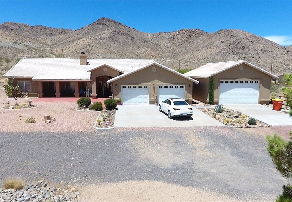 IT'S BOGO TIME! Buy one house and get a second one!! 2 separate parcels with 2 separate homes. Let's start with the main house. 3 bedroom/2 bathroom open concept with a split floor plan and HUGE Master suite sitting on 5.37 acres. This beauty backs up to spectacular views of the Western Rim of the Grand Canyon. In the early part of the day, you'll even get to meet the wild horses that like to come to the fence line to say, Good Morning, after hanging out in the desert with their friends - Big Horn Sheep, Cattle, Deer and lots of Quail and Bunnies. There's a full length covered patio in the front to enjoy the peaceful surroundings and wildlife of this setting as well as an enclosed patio (AZ room) and another back patio all designed to keep you as close as possible to nature and those views. The living room of this home features an electronic fireplace for warming up in front of on chilly desert nights. Before we meander down to the second home and pool, let's talk about those garages The attached double garage is approx. 23 feet deep and 27 feet wide. The second garage sits beside the first and is approx. 29 feet deep by 24 wide. Grab your water shoes and a towel and let's walk down to the second home. This little gem is surrounded by a block wall and self closing gate sitting on 6.44 acres. There's also basket ball 1/2 court, built-in BBQ, outdoor shower and 3 storage sheds. One of the sheds is insulated and has a window A/C unit. This beautiful, large pool features a waterfall feature and a hot tub. Step inside the home to an oversized bathroom set up to be access by both the pool guests and the occupant. This smaller home is 1,251 square feet of the total 3,403 square feet of living space. This home features 5 sets of sliding glass doors so you have a pool view whether you're in the bedroom area, kitchen, living room or dining room. The covered patio shades the glass doors to keep the home cool and the pool guests a place to relax out of the sun. You get to define how you use this secondary home. Pool house/Recreation house/Granny Flat/Casita/Rental Property/Dog House for when your spouse is in trouble? So many options! Home features a brand new well shared with only one other property. Main house was updated in 2021 included new A/C units for both homes. The entrance to the main home property is guarded by a solar powered gate.