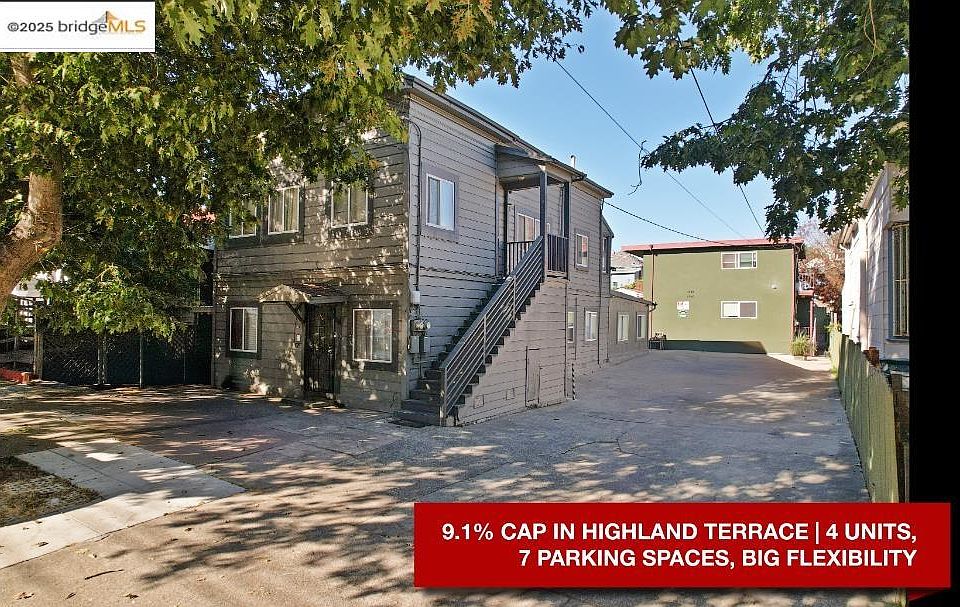 High-income property with built-in upside in Oakland’s Highland Terrace, 1944 E 24th St features four legal units—three 2BD/1BA and one 4BD/1BA—plus a bonus 2BD/1BA unit with its own private entrance. One 2BD unit will be delivered vacant and move-in ready—perfect for an owner-occupant or setting market rents. Two Section 8 tenants are currently paying below market, creating a clear path to raise rents by $2,300+/month. With projected gross income of $10,500/month, the property offers a strong 9.1% CAP rate. Set across two two-story buildings totaling 3,480 sq ft on a large lot with 7 off-street parking spaces. Located near Lake Merritt, Downtown Oakland, and major freeways, this is an ideal fit for investors, owner-occupants, or multigenerational buyers seeking income, space, and long-term flexibility.