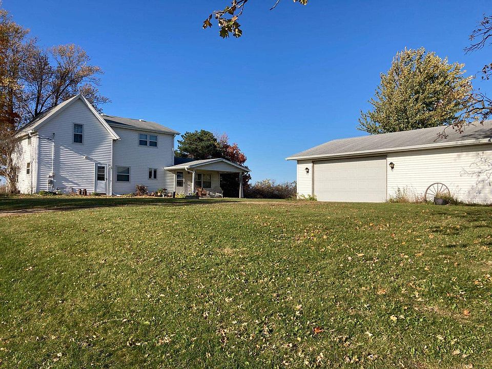 A 4 bedroom, 2 bathroom house on 1 acre in the Town of Blue Mounds. The house has 1 bedroom and 1 bathroom on the main floor with 3 more bedrooms and another bathroom upstairs. It has a very large living room - check out that view from the picture window! The lot has mature trees, a nice yard, and is located on a quiet town road. The detached garage is HUGE with an additional workshop area. Measurements are approximate. Buyer to verify if important.