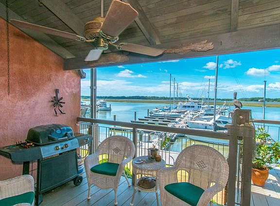 Spacious 3 bedroom townhome with 3.5 bathrooms. Located opposite pool area. Panoramic views of Bohicket River and the Marina.