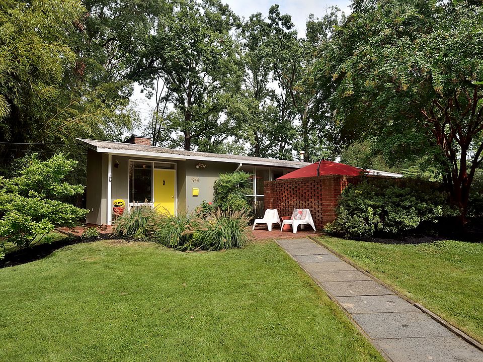 Gorgeous Mid-Century modern home on 1 level with amazing additions. Vaulted foyer, soaring family room/4th bedroom w/skylight, soaring master suite with large bathroom, walk-in closet. Laundry room addition with two exterior storage rooms/sheds. Plus 5th Bedroom/Office. 3 amazing patio/courtyard areas with flat yard. Dual Zone HVAC, Dble pane windows thru out.
