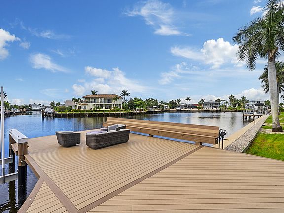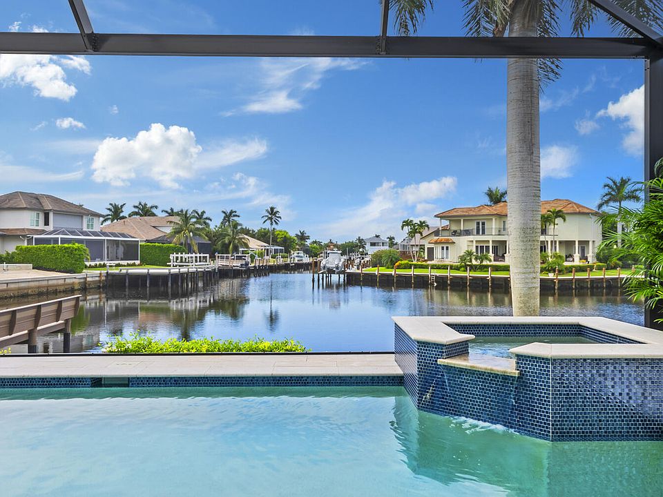 Entertain on the spacious shell stone paver lanai with picture window screens, beautifully redesigned pool & spa, outdoor kitchen and fire pit. Or meander to the new dock with a massive deck to lounge on and take in the long water views & sunset. New Vinyl seawall & a Cat 5 wind rated 16,000 lb. boat lift.