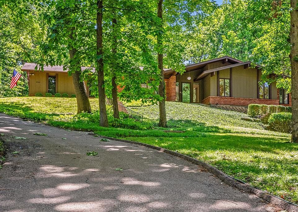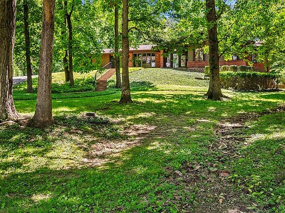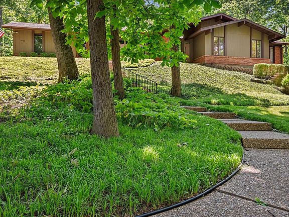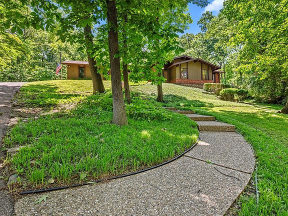 Simply FABULOUS! This one-of-a-kind custom home has been meticulously maintained by the original owners. This home offers a modern vibe and style, plus unique architectural elements enhance each of it's spaces both inside and out. From the dramatic vault in the living and dining room ceiling, the floor to ceiling wood burning fire place, large wooden ceiling beams, and very large windows that let in light and a view to the private and expansive yard. There are wide plank custom hardwoods under the well kept carpet in the living and dining area, and hard wood floors in all 3 bedrooms. The kitchen is laid out well, and offers a large breakfast area, with easy access to the large tiled patio just out side. The main level has 3 bedrooms, one being the primary, and 2 bathrooms. The lower level has a very large family or recreation room with a walk out, to more privacy and nature views. The lower level also offers a large storage room, or workshop, another bathroom a laundry area, and more storage. Houses in this area do not come on the market often! The home is ready to move right in with occupancy, or you could add some personal touches, with some renovations to the kitchen, and baths. To sum it up: Gorgeous custom home on a private, and wooded one acre lot, in a very quiet but very conveniently located area in Kirkwood! Common ground includes a lovely spring that flows and a historic spring house.