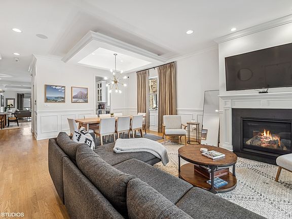 An exceptional home on a quiet tree-lined street. This extra wide duplex unit lives like a single-family home. You will feel right at home when you approach the handsome brick facade. Once you step inside, you are greeted by high ceilings, a wide floorplan, designer lighting, a home audio system, luxurious finishes throughout, and best of all... an abundance of light! The main floor of this home features a true chef's kitchen with custom cabinets, including a stunning island, marble counters, and backsplash - appliances by Sub-Zero and an iconic Wolf range. This chef's kitchen was also designed with an area for a breakfast table, a butler's pantry, and an organized walk-in pantry. Just off the kitchen is the oversized family room with built-in cabinets and tons of windows that capture amazing light. Step out the sliding doors to your three private outdoor spaces, including a terrace that leads to your private roof deck and a fully fenced private side yard. All three outdoor spaces are entirely private just for you! This main level also features a formal living room with a fireplace and doors leading out to your front terrace. A separate dining area and a convenient powder room make this a perfect floor plan. The lower level has 4 bedrooms and features heated floors throughout. The primary bedroom has a large, professionally organized walk-in closet and elegant bath with custom cabinetry, double vanities, radiant heated floors, a steam shower, a soaking tub, and tons of storage. Bedrooms 2, 3, and 4 are all generous in size and have great closet space. Enjoy a proper laundry room with custom cabinets, making organization a breeze. This home offers a tremendous amount of space, storage, and outdoor living. One garage space included and an extra storage room - this is one of the best homes on the market...don't miss out! You're steps away from restaurants, dining, parks, the best schools, easy access to 90/94, and public transportation.