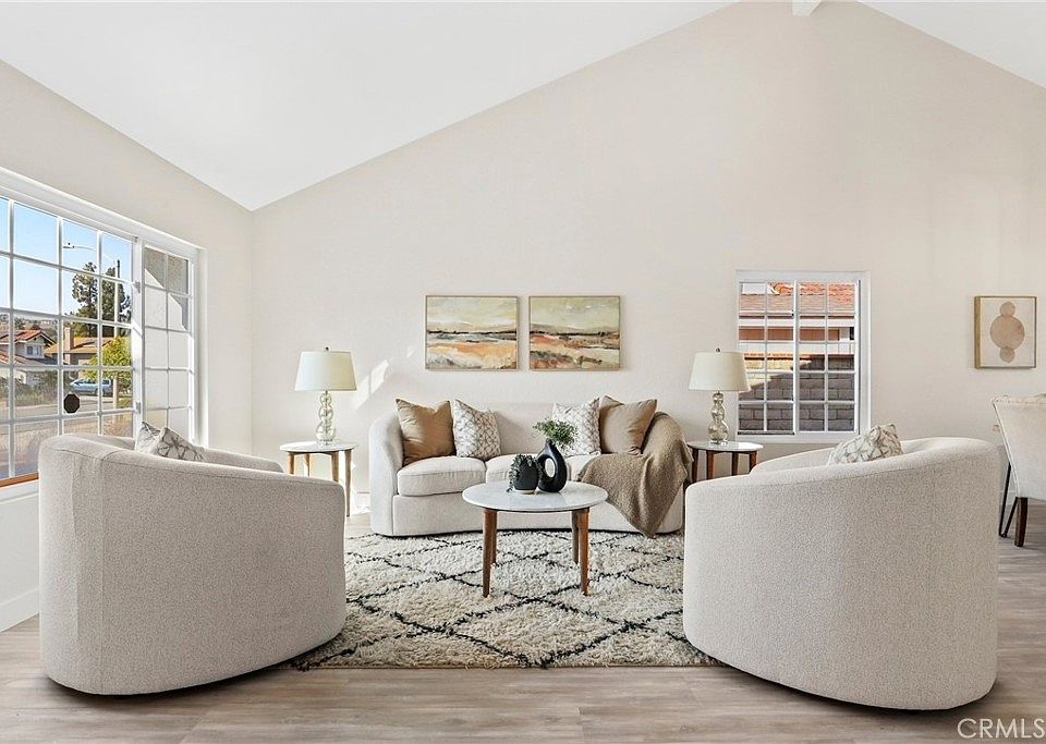 Grand Living Room: Double-door entry and dramatic ceilings create a bright, open, and welcoming atmosphere.