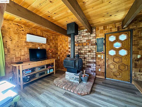 Freestanding wood stoveVintage gas stoveGentle foothillsMini-split unitOpen concept main levelTwo car detached garageNatural light