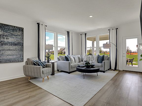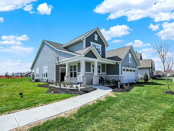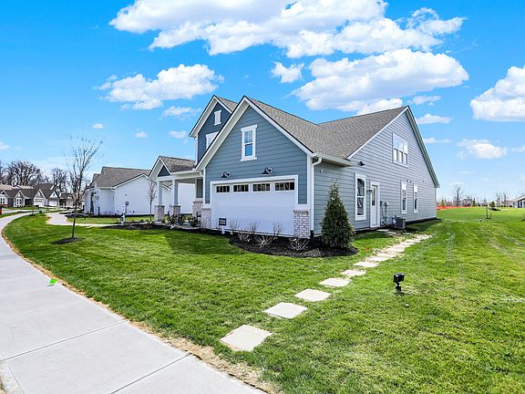 The Monroe model home in Osborne Trails offers the perfect blend of comfort, style, and modern 55+ living. With over 2,700 square feet of thoughtfully designed space, this 4-bedroom, 3-bath home combines open-concept living with well-defined areas that feel both refined and welcoming. At the heart of the home, the kitchen impresses with its expansive island, ample storage, and seamless flow into the bright dining room-ideal for everyday meals or entertaining guests. The great room centers around a gas fireplace, creating a warm and inviting focal point for gatherings. Tucked near the main-level bedrooms, a private flex room offers versatility. It's suited for a home office, crafts, reading, or quiet relaxation-enhanced by a designer chandelier and a sophisticated accent wall. The main-level bedrooms showcase thoughtful detail, including custom wall treatments, wallpaper accents, and statement lighting throughout. The primary suite is a highlight, featuring vertical wood detailing, a calming color palette, and a spa-like ensuite bath. Upstairs, a versatile loft extends the living space with floating cabinetry and an artful accent wall-creating a relaxing place to unwind or entertain guests-along with a beautifully finished secondary bedroom and full bath. Outside, enjoy the best of Indiana seasons from the covered rear porch, where a brick fireplace sets the tone for evenings spent relaxing or hosting. Enhanced with premium landscaping, irrigation, and a full security system, this former model home reflects attention to detail at every turn. Set within Osborne Trails, Westfield's premier 55+ community, residents enjoy resort-style amenities including a 9,000+ sq. ft. clubhouse with a bar, game room, library, and fitness center, plus pickleball courts, walking trails, outdoor kitchens, and a sparkling pool. With a full calendar of social activities led by an on-site lifestyle director, life here is designed for connection, comfort, and carefree living.