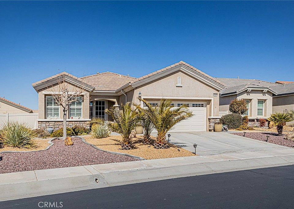 Welcome to the Private Gated Adult 55+ Community at Sun City Del Webb in Apple Valley! This perfectly well maintained two bedroom and two bathroom single story house has lots of things to offer. It has open floor plan with high ceilings and besides the two bedroom, it has a bonus room that can be used as an office or a hobby room. The Kitchen features oak cabinets with lots of storage and the dining area has pantry and breakfast bar. There is tile flooring in the kitchen, entry and all bathrooms and laminate flooring through out the house. It has central air conditioning and heater. The living has a nice fire place. The master bedroom has a big walk-in closet located in the private bathroom dual sink and walk-in shower. The guest bathroom has a tub. There is an indoor laundry room with utility sink. The back yard has a covered patio for BBQ and plenty of room for vegetable garden, fruit trees and possible putting for Golf practice. The front yard is well landscaped for low maintenance. The seller paid high premium for the big lot.