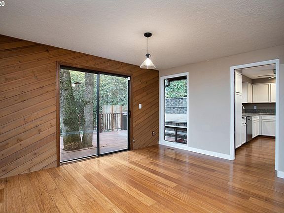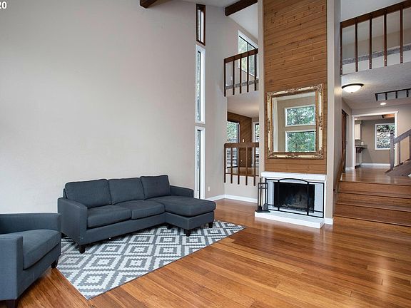 Live in an oasis surrounded by the beautiful Oregon trees. High above the street, this NW contemporary home boasts wood beams, high, vaulted ceilings, bamboo floors and walls of windows. Gourmet kitchen & family room walks out to a beautiful stone patio & deck, perfect for gatherings. Master suite with updated bath plus 2 additional bedrooms & loft. The lower level bonus room and full bath creates an additional living space that also has an outside entrance. Great location close to shops & parks