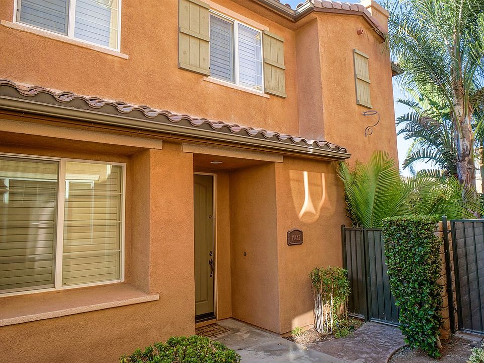 Model Perfect Mariposa Condo in Plum Canyon. Beautiful Bamboo Wood floors, upgraded carpet, custom paint, crown molding, light fixtures, ceiling fans, shutters throughout. Cozy living room with fireplace, built in entertainment area. Nice size nook which is perfect for a home office. 3 Spacious bedrooms all with closet organizers upstairs. Kitchen features granite counters with lots of cabinet space. Laundry room is downstairs. 2 car attached garage with overhead storage & epoxy flooring Step outside to the nice size backyard where you can have a weekend BBQ or just enjoy a morning cup of coffee.. Community amenities include swimming pool, BBQ area & club house.