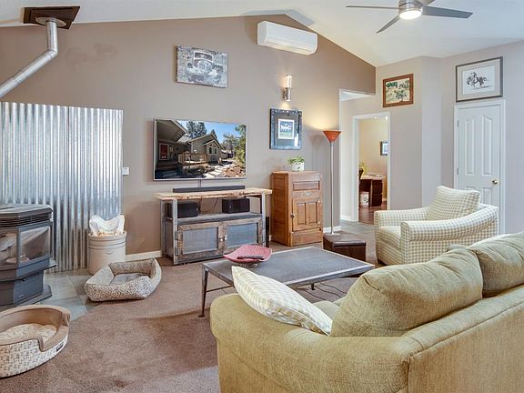 Beautifully treed .91 acre lot that allows for ample privacy. Upon arriving, enter into an open concept living room, dining room and kitchen. The home appeals to many with neutral interior paint colors and rustic accents throughout including slate in the entrance, hallway and guest bath. Red Oak wood flooring is highlighted in the dining room, kitchen, laundry and pantry. Take a moment to look up from the stunning floors to discover granite counters, a country sink and stainless appliances. This stunner will always feel cozy with the living room's pellet stove as well as a ductless mini split heat pump installed in Oct. 2019. French doors in the dining room lead to 1000 sqft. of custom deck of which 500 sqft. are covered. Relax in the 4-person hot tub with a privacy fence or enjoy the firepit and -acre fenced back yard with RV parking. Rounding out this home is a well-insulated garage with attic access and a work bench.