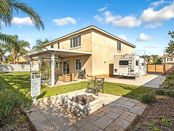 Welcome to 19445 Mi Casa Court in the exquisite area of Orangecrest. This stunning 5 bedroom, 3 bathroom home is a testament of luxurious living. Bright and spacious, it features a thoughtfully designed open floor plan that bathes the interiors in natural light. From the moment you enter, you will notice the pride of ownership. From herring bone tile, to the maple wood floors. This beauty has it all. Formal living area, formal dining, and downstairs bedroom with full bath and walk in shower. Yes, walk in shower. On to the living room, fireplace for cozy nights, a bar with storage galore, wine refrigerator and get this, a kegerator. Talk about entertaining! The kitchen is bright, open and a chefs dream! Dolomite counters, farmhouse sink, modern lights, recessed lighting, gorgeous backsplash, walk in pantry, coffee bar, stainless appliances with hood stove, oversized Frigidaire Professional Freezer/Refrigerator and a view to the backyard. Upstairs you will find a large primary bedroom with a fireplace and en-suite bathroom that you will love! Unwind in the large soaking tub! A separate and yes, large shower is also in the bath area with two individual sinks and makeup area. Don't forget to check out the walk in closets for him and her. The three secondary bedrooms upstairs have an impressive amount of closet space. The loft is oversized and ready to make it the game room, office, tv room or whatever you like. Laundry room is upstairs so no more dragging clothes up and down the stairs, has a sink, plenty of cabinet space and folding areas. Did I mention there is direct access to a six car garage with an additional one car pull through and RV parking? Close to Highly Rated schools, community parks, community center and library, and is conveniently located to shopping, dining, entertainment and UC Riverside. There is nothing else I can think of to make this home more perfect. Come see it before its too late!