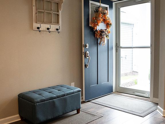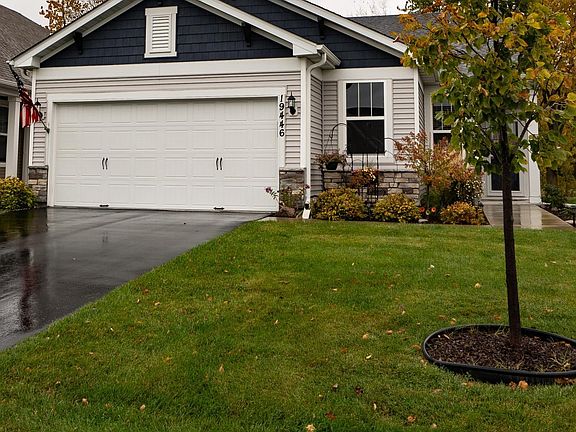 Welcome to this 2 bedroom, 2 bathroom single-level home in the desirable Bellwether by Del Webb 55+ community that offers comfort, connection, and convenience. Entering the open concept layout, you will be welcomed with plenty of natural light, beautiful vinyl plank floors, and a cozy fireplace. The office is located off the living room providing space for work or hobbies. You will appreciate the gorgeous vinyl plank floors throughout the common areas. The kitchen blends modern finishes with easy main-level living, complete with a large island and stainless steel appliances. A few features that set this house apart are the extended garage—four feet deeper than standard—providing ample space for vehicles, storage, or a workshop area. The garage entryway and laundry room have both been enhanced with custom cabinetry, adding functional style and extra storage. Step outside to the expanded concrete patio, perfect for morning coffee or evening relaxation, and enjoy the privacy of no backyard neighbors—a rare and coveted feature in this community. As part of Bellwether by Del Webb, residents enjoy exclusive access to a spectacular clubhouse, fitness center, pool, walking trails, and a full-time lifestyle director who coordinates social events and activities year-round. Lawn care and snow removal are taken care of, leaving you more time to live and enjoy. Experience easy living without compromise—schedule your private tour today!
