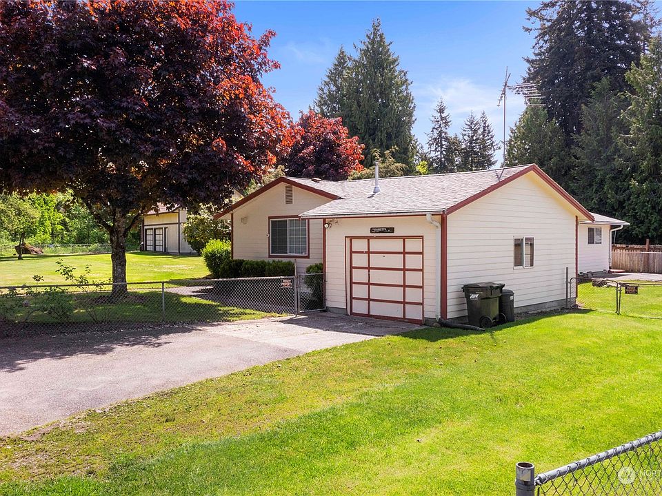 Welcome to your charming 2 bedroom, 3/4 bath Rambler, nestled on a spacious 1/2 acre lot with a fantastic shop! Home offers 1320 sq. ft., a cute galley kitchen w/garden window.Large primary w/double closets & door out to the large deck that expands the length of the house, Updates previously done include A/C, laminate flooring, bath refresh w/beautiful tiled walk-in shower, cement planked ext. There's a good size utility room w/sink. Huge 2-car shop w/workspace, wood stove & an upstairs area w/2 rooms for a plethora of options! Located in the peaceful neighborhood of the Spring Lake Community, this home offers a retreat from the hustle & bustle of city life while still being conveniently close to amenities and easy commuting. NO HOA-